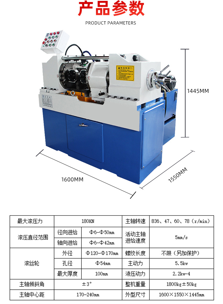 产品特点:Z28-150型滚丝机主要用于滚压各種(zhǒng)型号精身區密外螺纹,高强度标准件及较大螺距的地角螺栓、T型丝杠等工件。